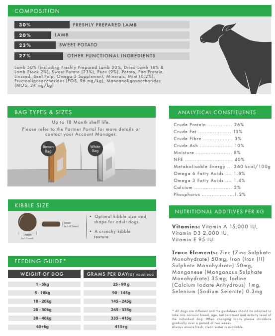 Lamb 50% (including Freshly Prepared Lamb 30%, Dried Lamb 18% &